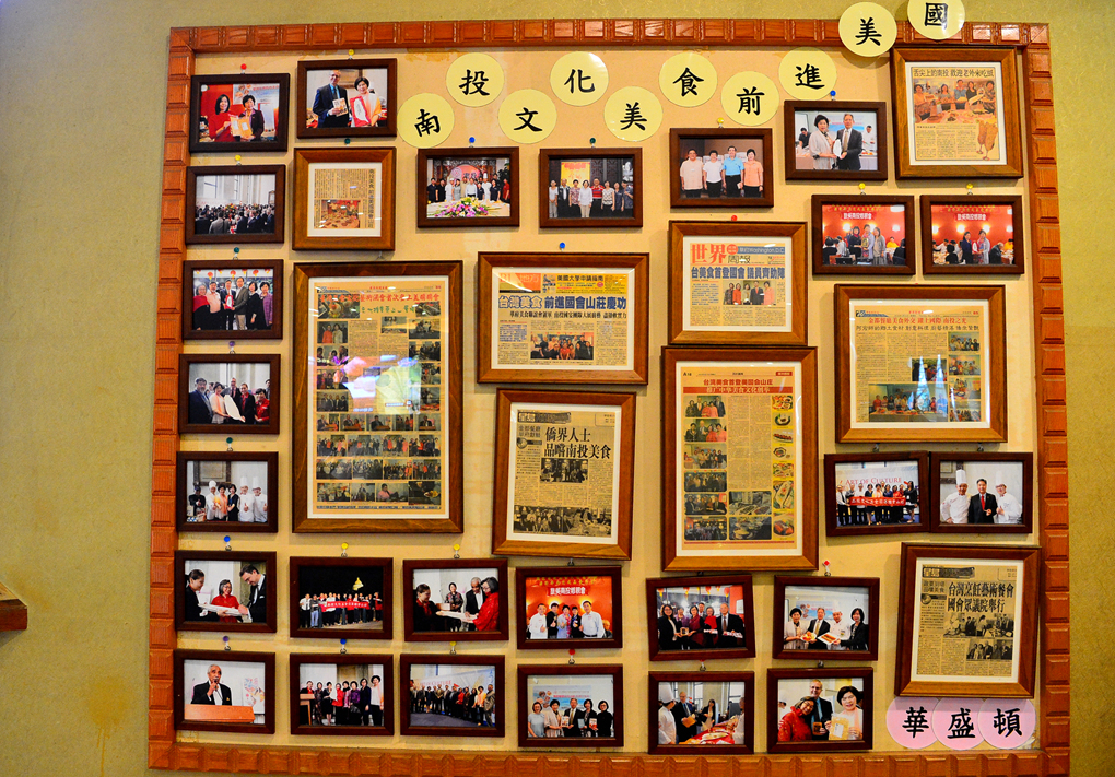 식당 한쪽 벽에 걸려 있는 수많은 사진들~