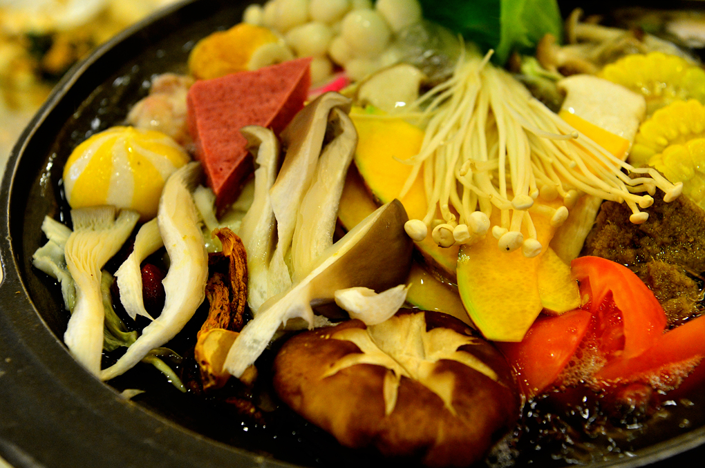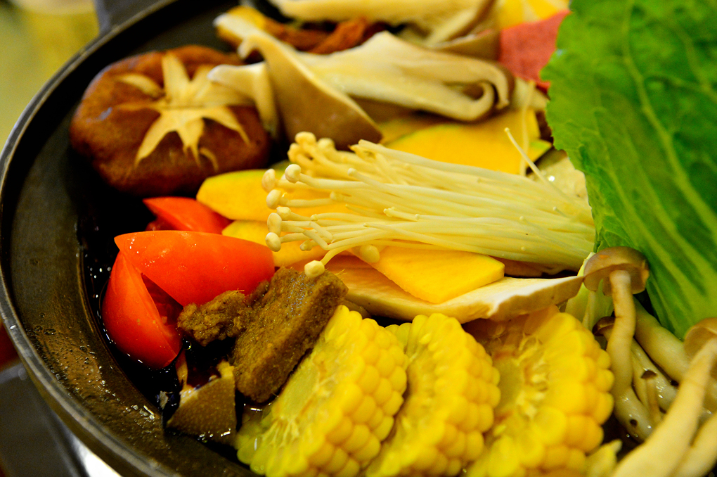 냄비 가득 각종 야채를 얹은 탕도 나온다.