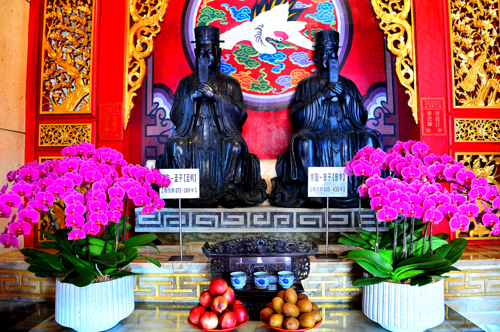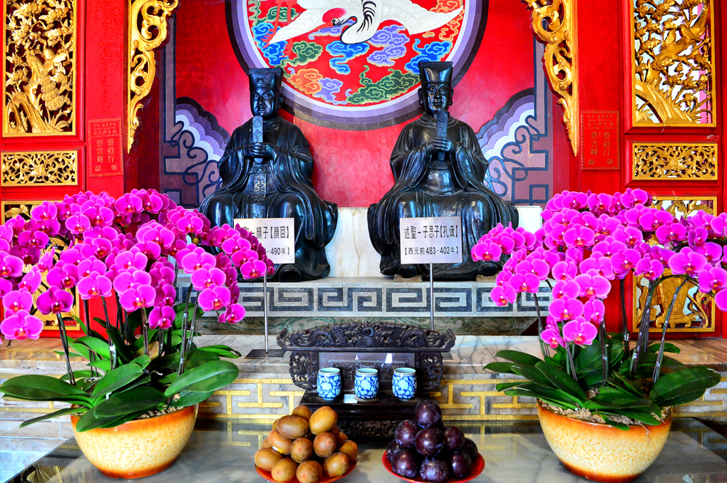 다른 한쪽에는 공자의 제자로 알려진 顔回와 子恩子 (孔儀)도 모셔져 있다.