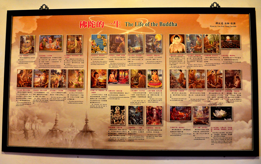 한쪽 벽면에는 불타의 일대기를 그림과 함께 비교적 상세하게 적어 놓았다.