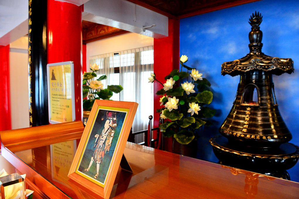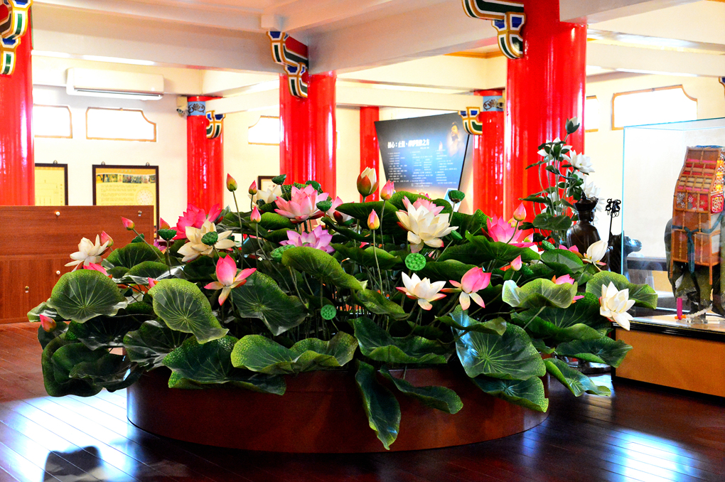 그 앞에는 아름답게 핀 연꽃이 놓여 있다.