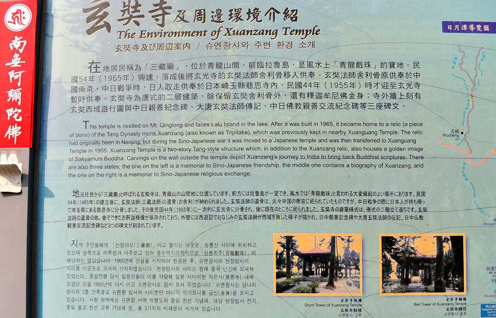 지역 주민들에게 산창마오 三藏廟라고 불리는 이곳은, 칭룽산 사이에 위치하고 있으며 앞쪽으로 라루섬과 마주 보고 있어