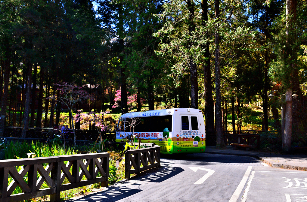 앙증맞은 미니 버스가 우리를 아리산 역에서 이곳 산림 트래킹 시작점까지 실어다 주고 되돌아 나간다.