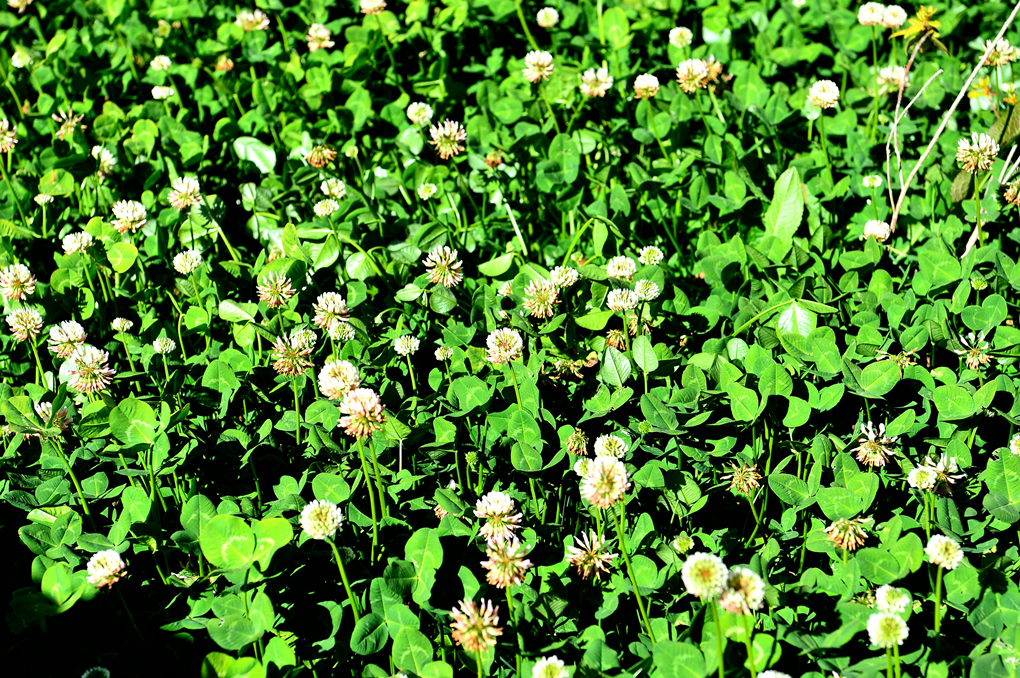 벚나무 아래에는 행운의 상징 토끼풀이 무성하게 자라고 있다.