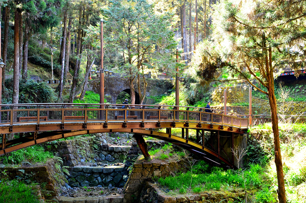 좁은 계곡을 가로지르는 철제 다리가 멋스럽다.