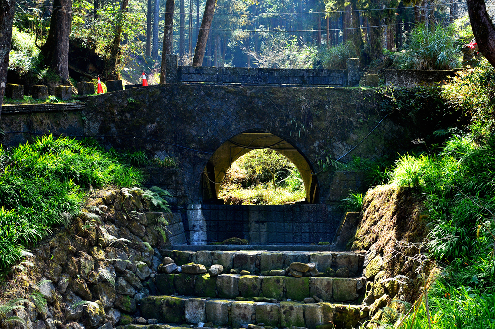 히 두드러진다고 하고 주변의 수목이 무성한 아름다운 경관을 보여 주는데, 다리의 바위를 뒤덮은 이끼가 세월감을 더해