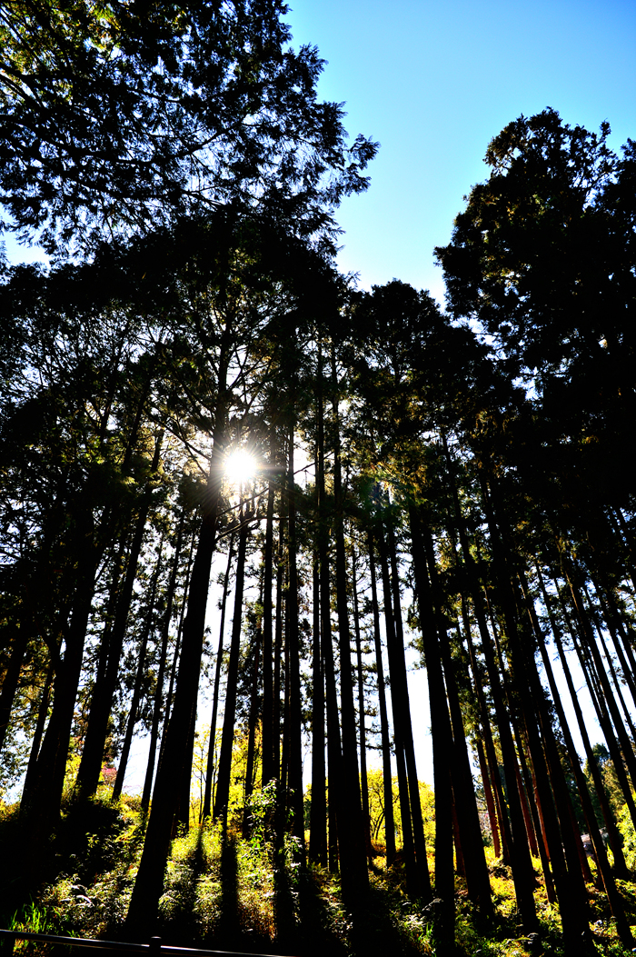 직선으로 곧게 솟아 오른 멋진 나무들 사이를 거쳐서 트래킹에 나선다.