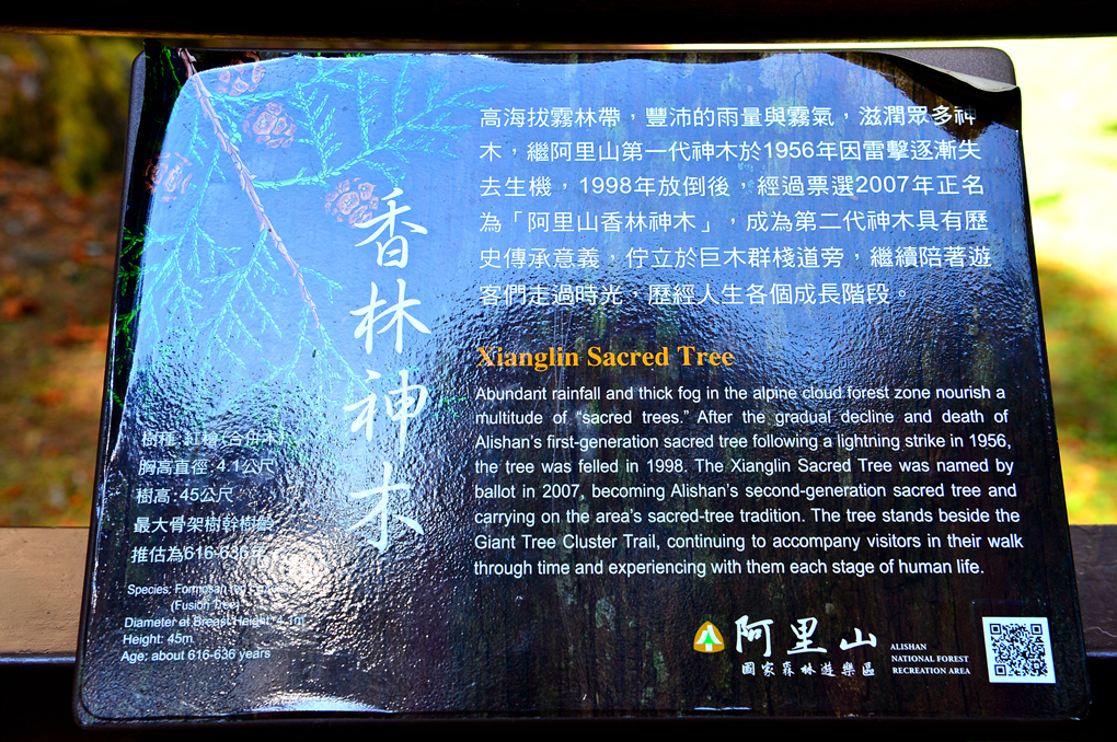 이 샹린 신목은 2007년 투표를 통해 명명되었으며, 아리산의 2대 신목이 되어 이 지역을 계승하고 있다고 한다.