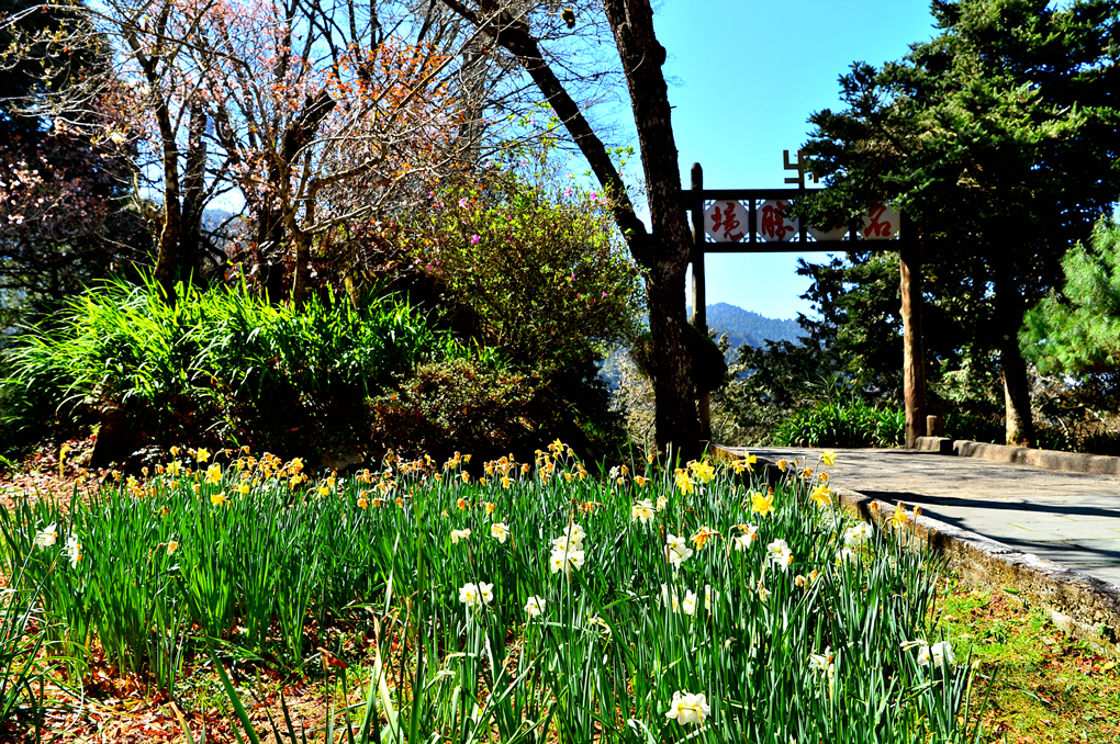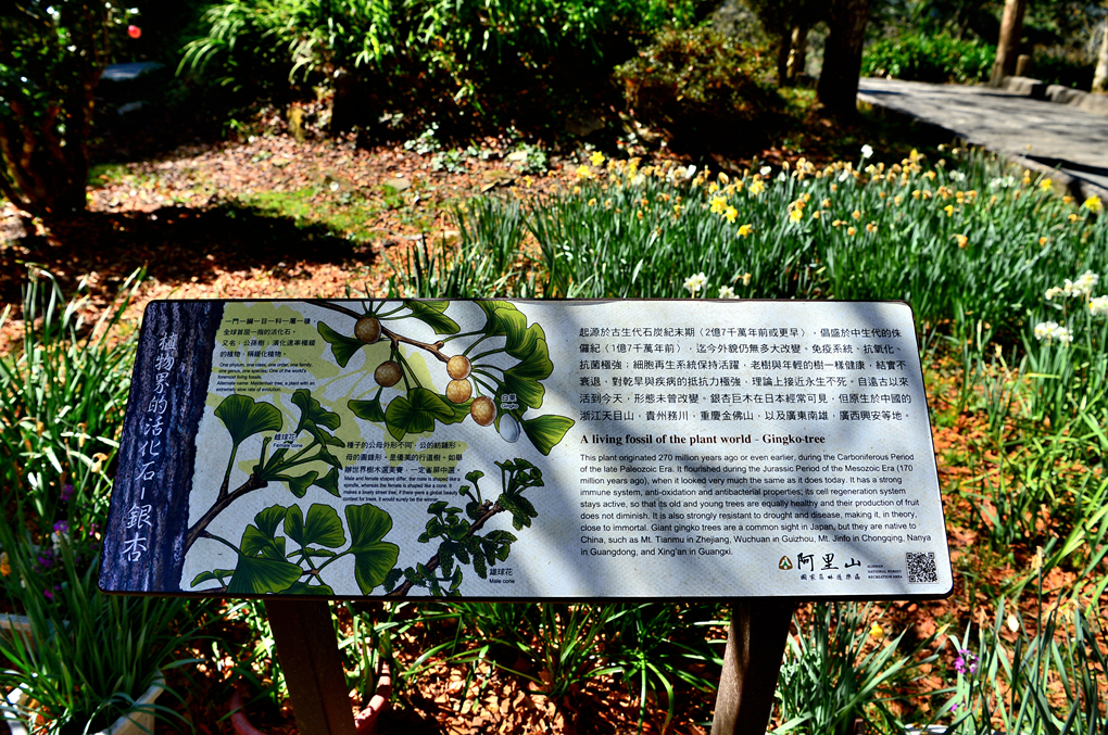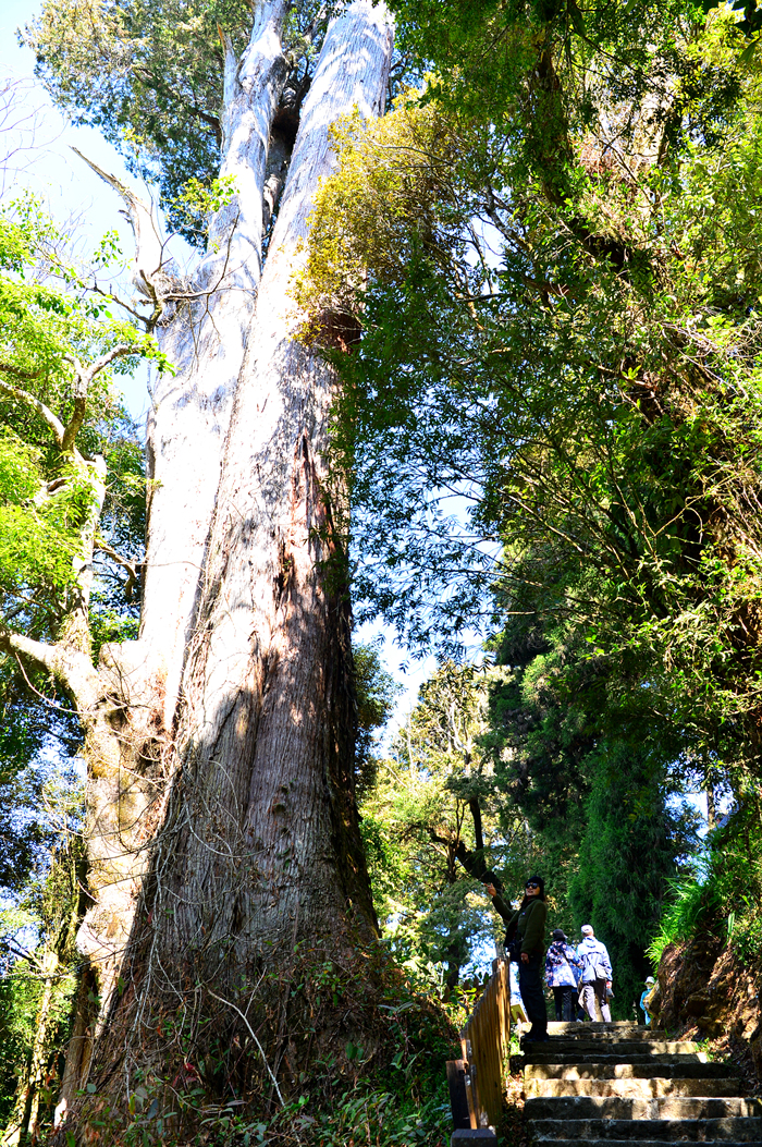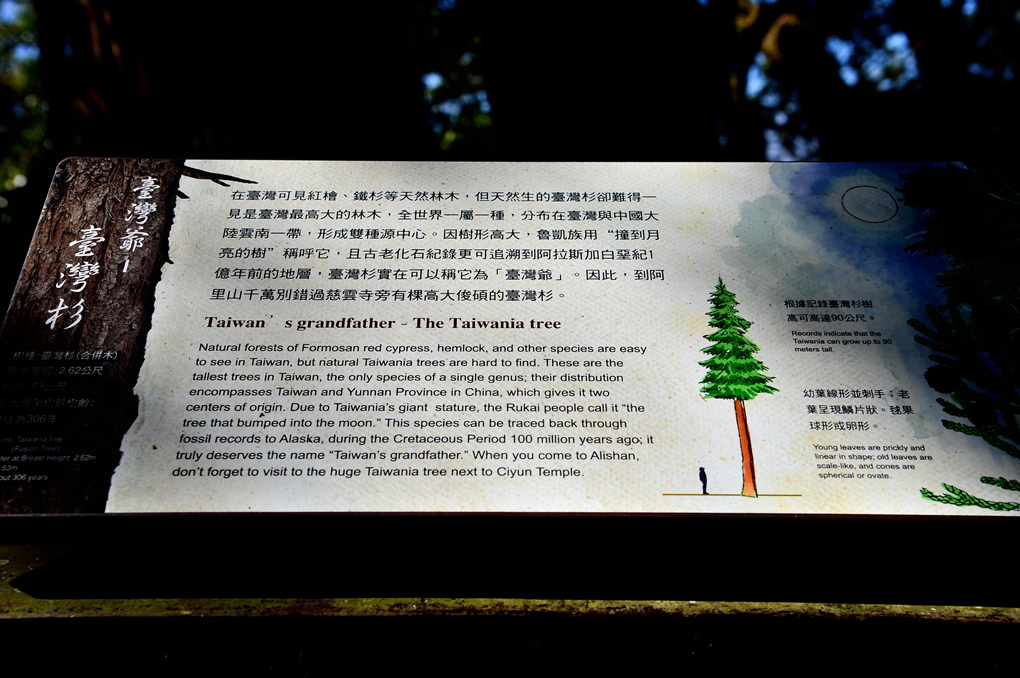 아리산에 오면 자운사 옆에 있는 거대한 타이완 나무를 방문하는 것을 잊지 말라는 글귀와 함께~