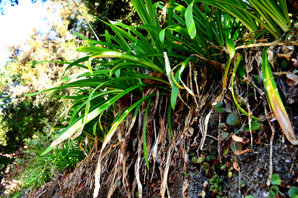 이끼가 잔뜩 낀 축대 옆을 지난다.