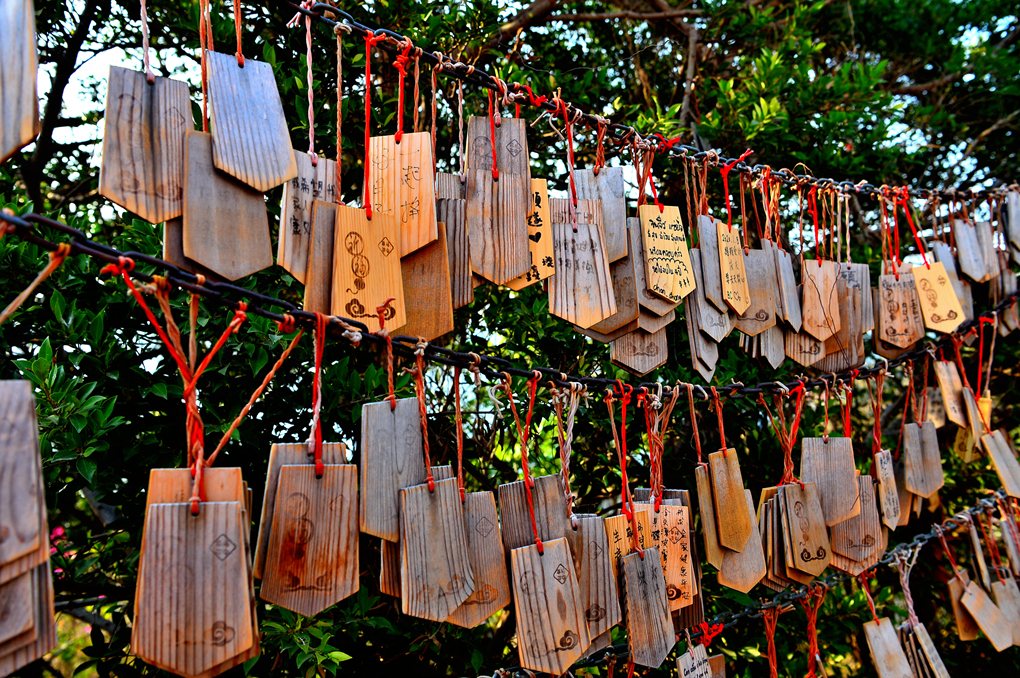 사원 앞에 걸린 수많은 소원패 모습이다.