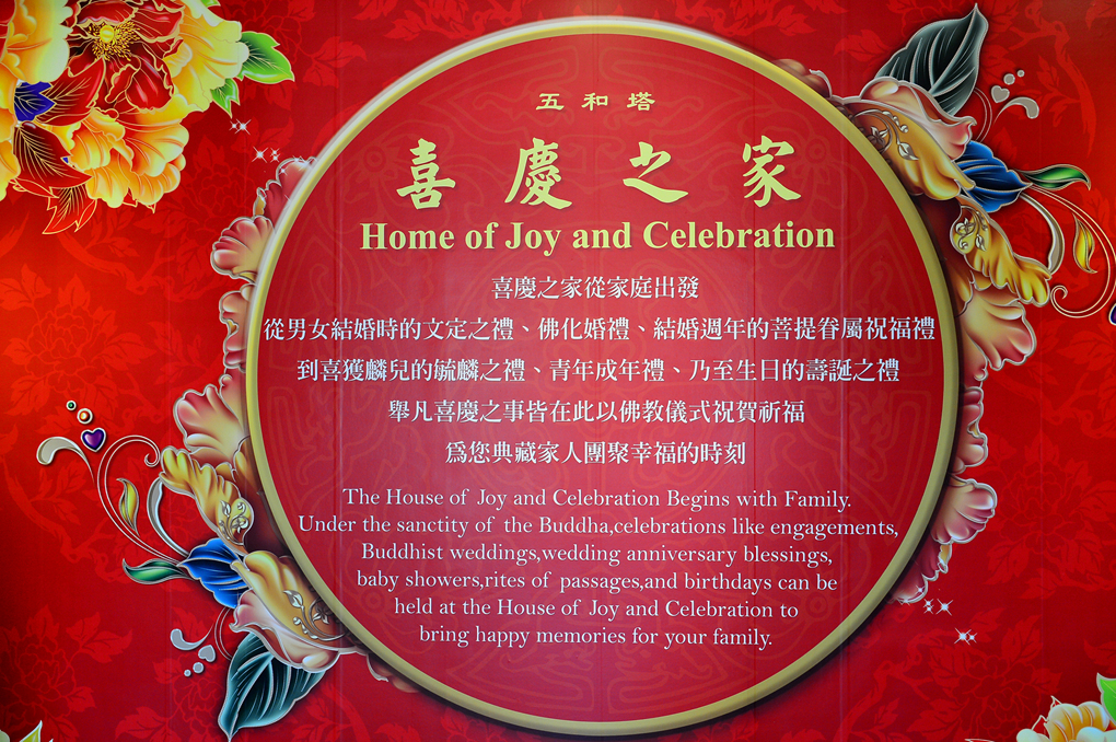 기쁨과 경축의 집은 부처님의 신성함 아래에서 시작되고, 이곳에서 행해지는 불교 결혼식, 결혼기념일, 생일과 같은 축하