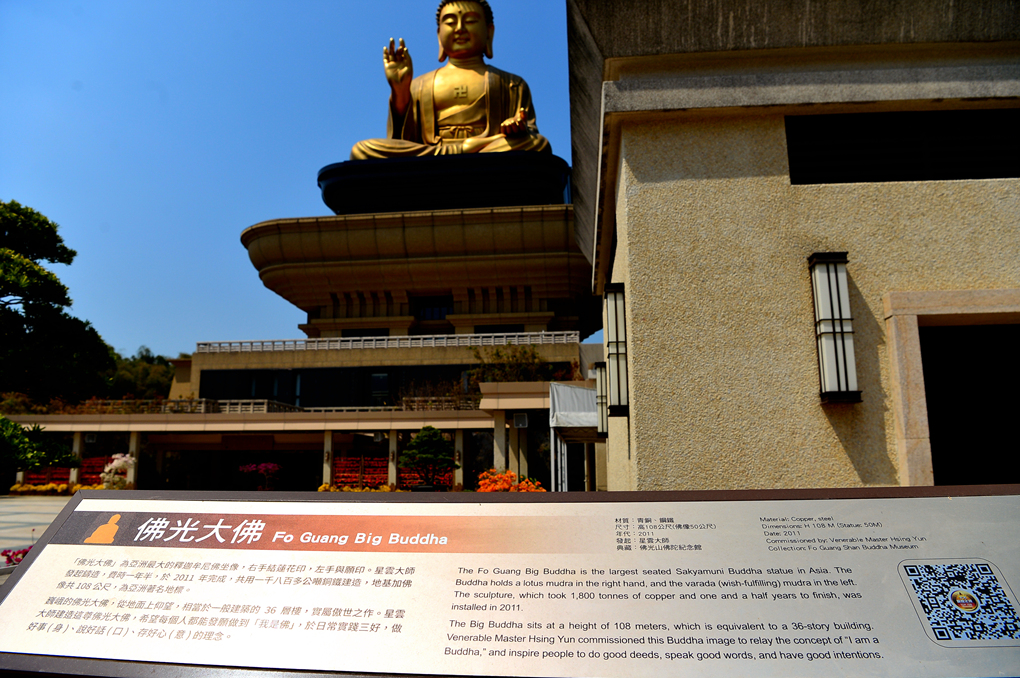 이 불광산사 佛光山寺는 부처님의 치아 사리가 봉안되어 있어 불교 성지로 유명한 세계적인 사찰인데, 높이 108m의 불상