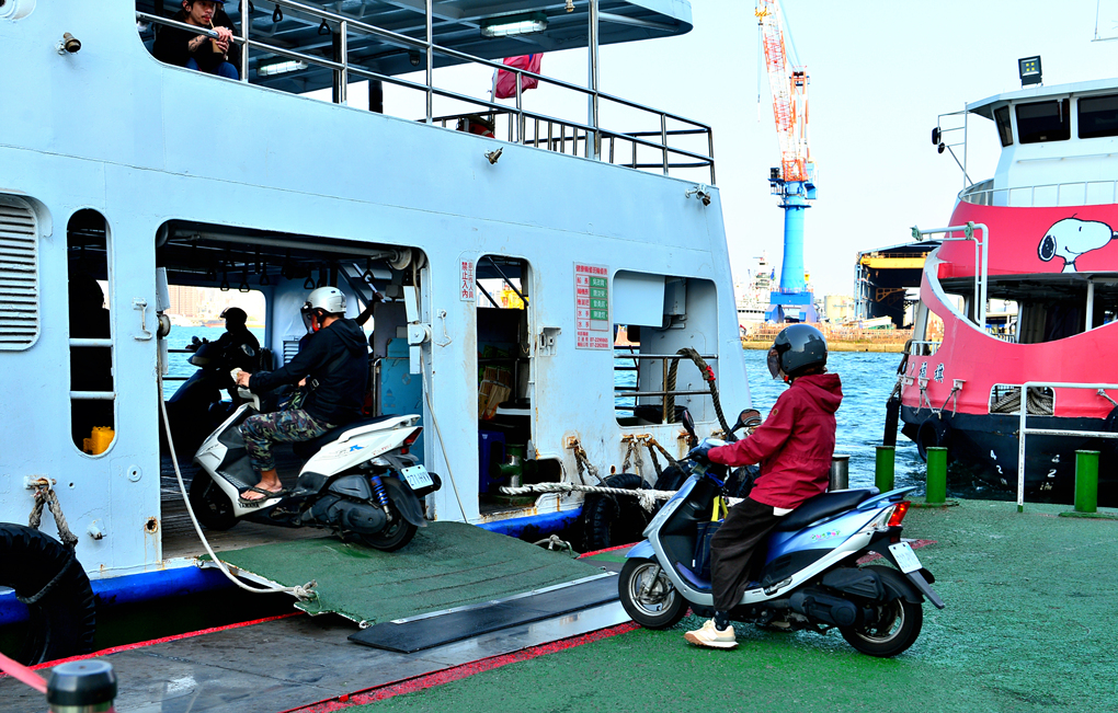 오토바이들과 함께 페리에 오른다.