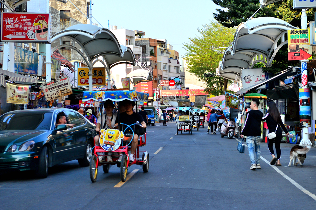골목 좌우의 많은 상점들 사이를 각종 탈거리와 관광객들이 누비고 있는 매우 활기찬 거리다.