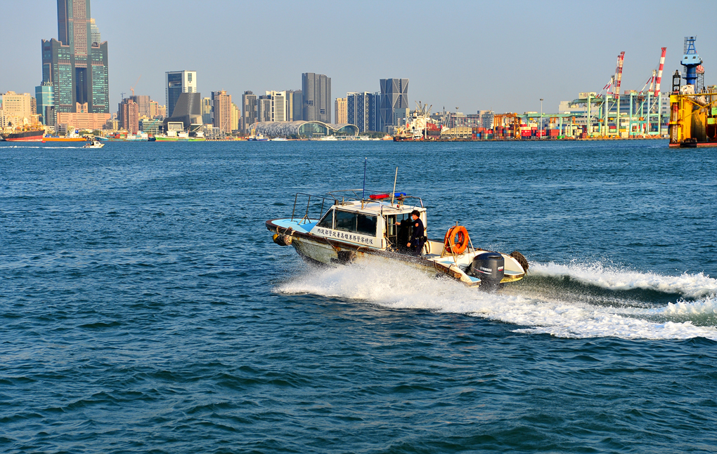 해안 순찰대의 고속정이 힘차게 물살을 가르며 달리고 있다.