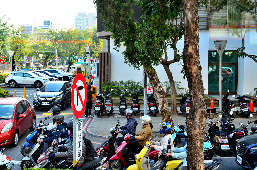 많은 오토바이들이 별도로 마련된 차선을 따라서 나란히 달리고 있는 모습이 여타 동남아 국가와 매우 다르다.