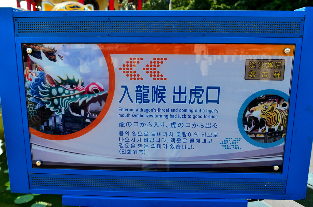 용호탑은 1976년에 만들어졌는데, 용의 배로 들어가서 호랑이의 입으로 나오면 크게 길하고 액을 피할 수 있다는
