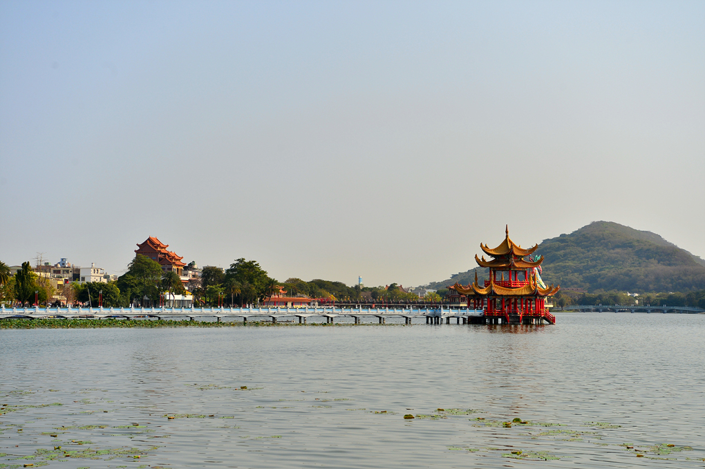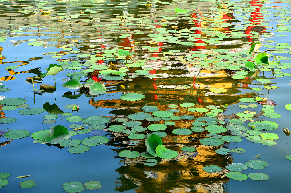 드넓은 연지에 떠있는 건축물들이 호기심을 자아낸다.