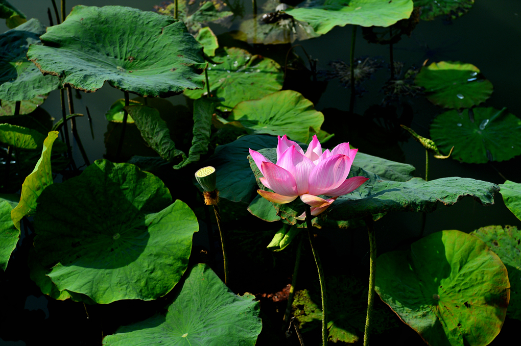 제철이 아닌지 많은 연잎이 활기를 잃고 시들어 있는 모양새다.