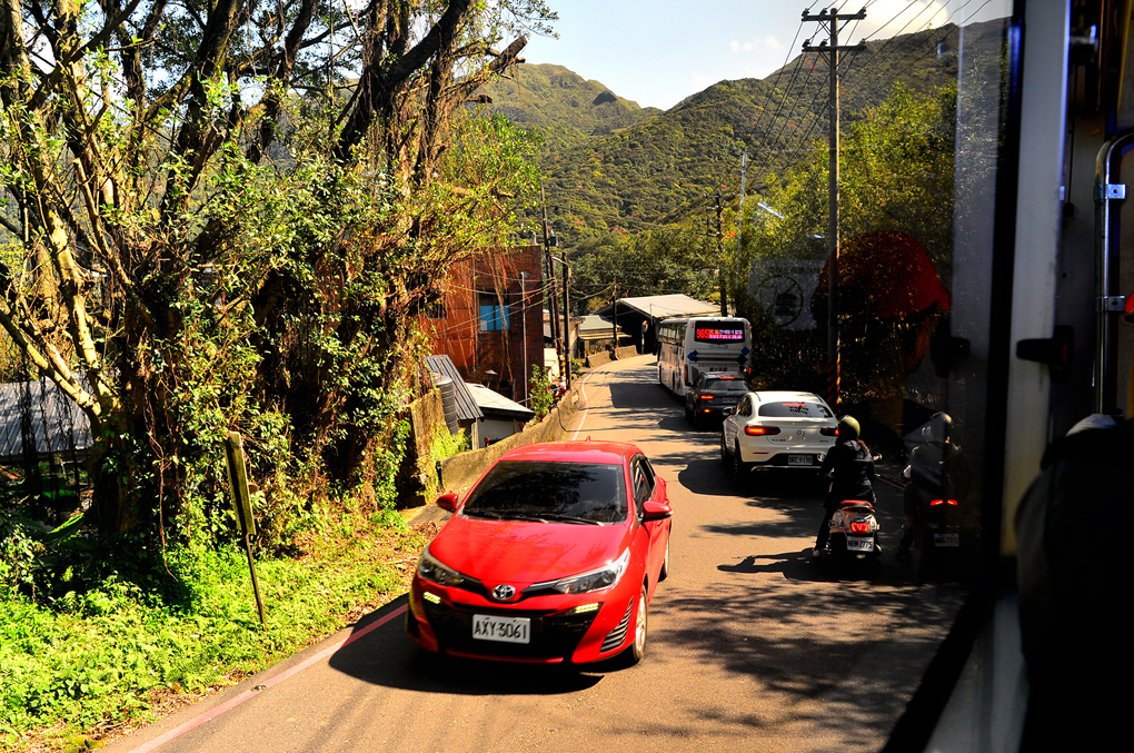 지우펀을 나선 지 얼마 되지 않아 갑자기 차량들이 멈춰 섰다.