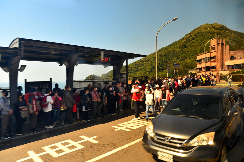 지우펀을 나서는 버스 정류장에도 많은 사람들이 몰려 있고~