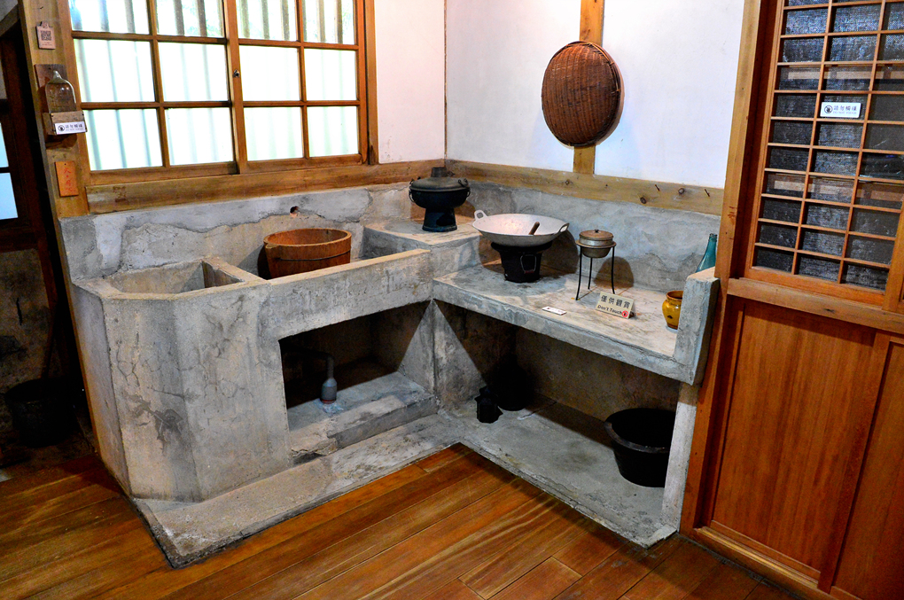당시의 간단한 세간살이를 배치해 놓은 부엌 모습이다.