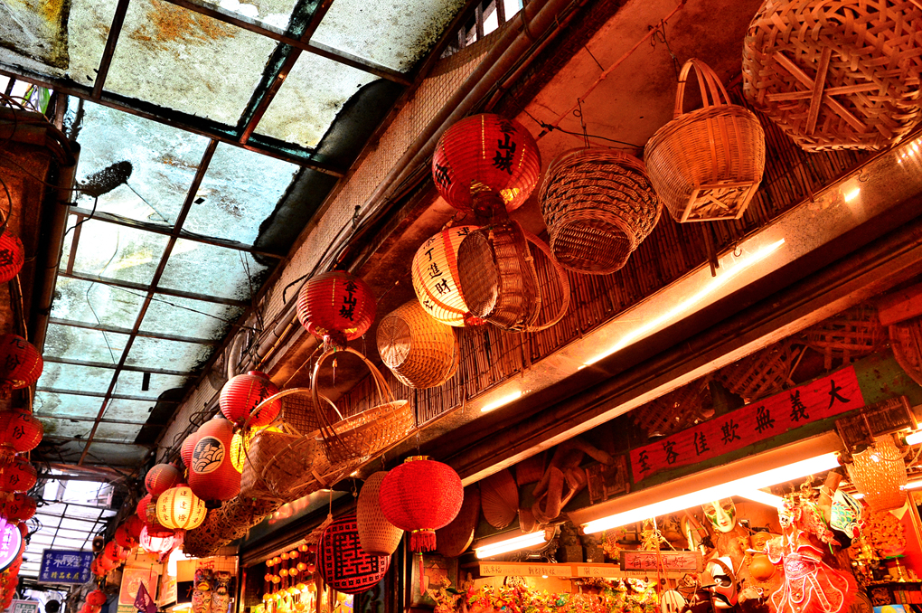홍등과 함께 각종 바구니들도 주렁주렁 매달려 있다.