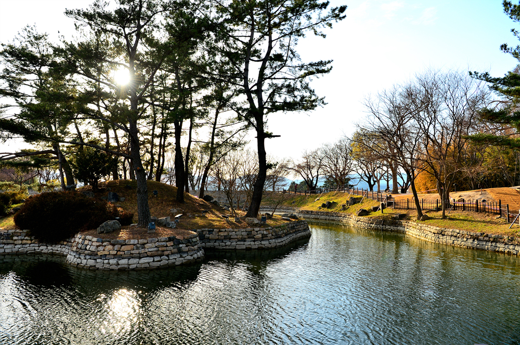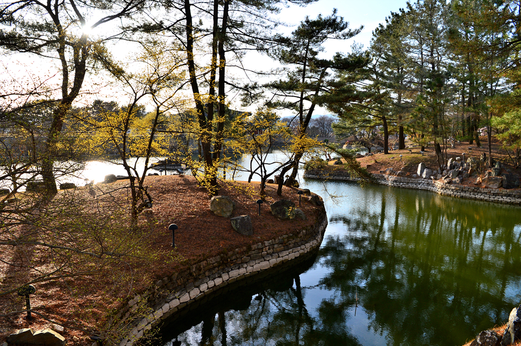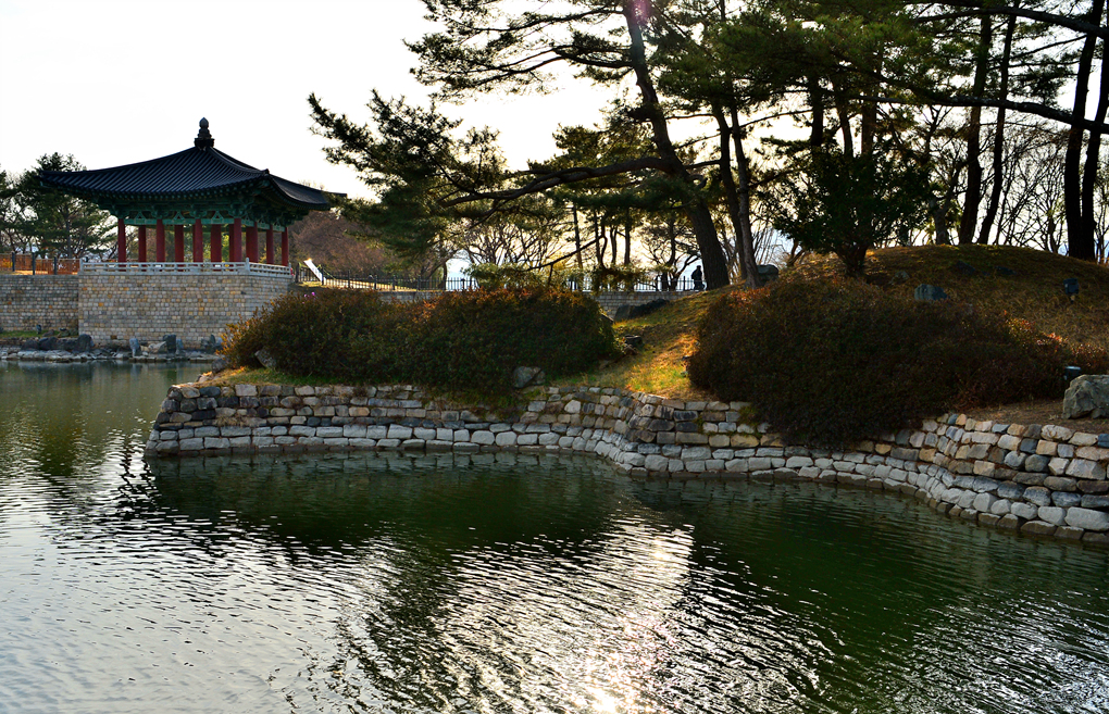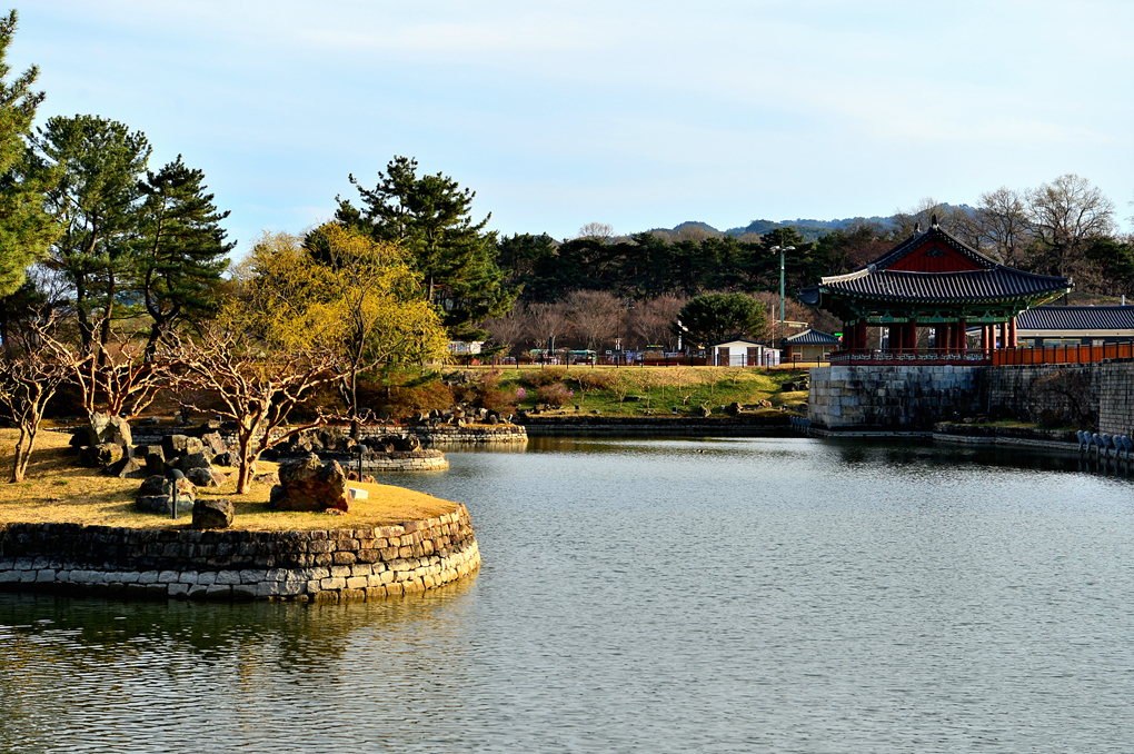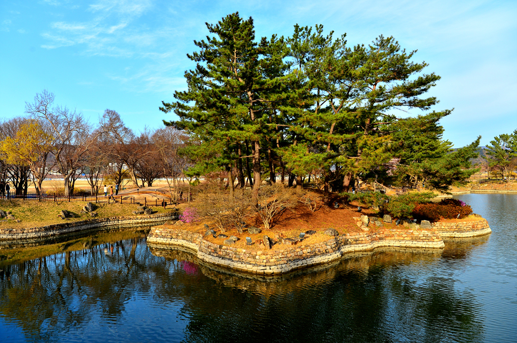 월지의 소나무 섬이 멋지다.
