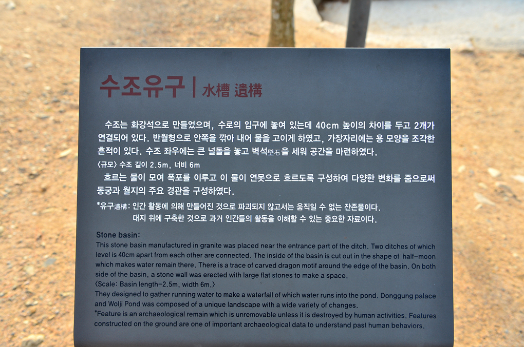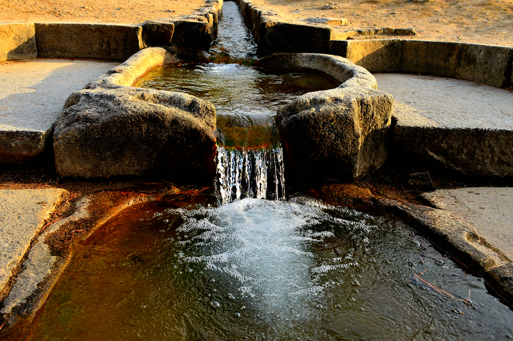 수조 유구의 물줄기가 아름다운 작은 폭포를 만들어 낸다.