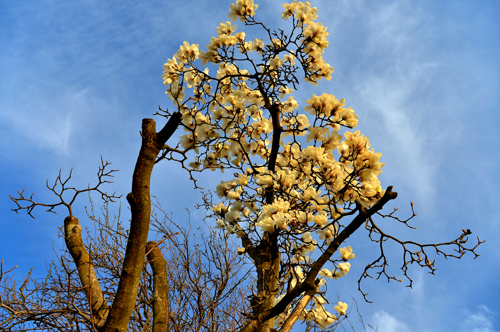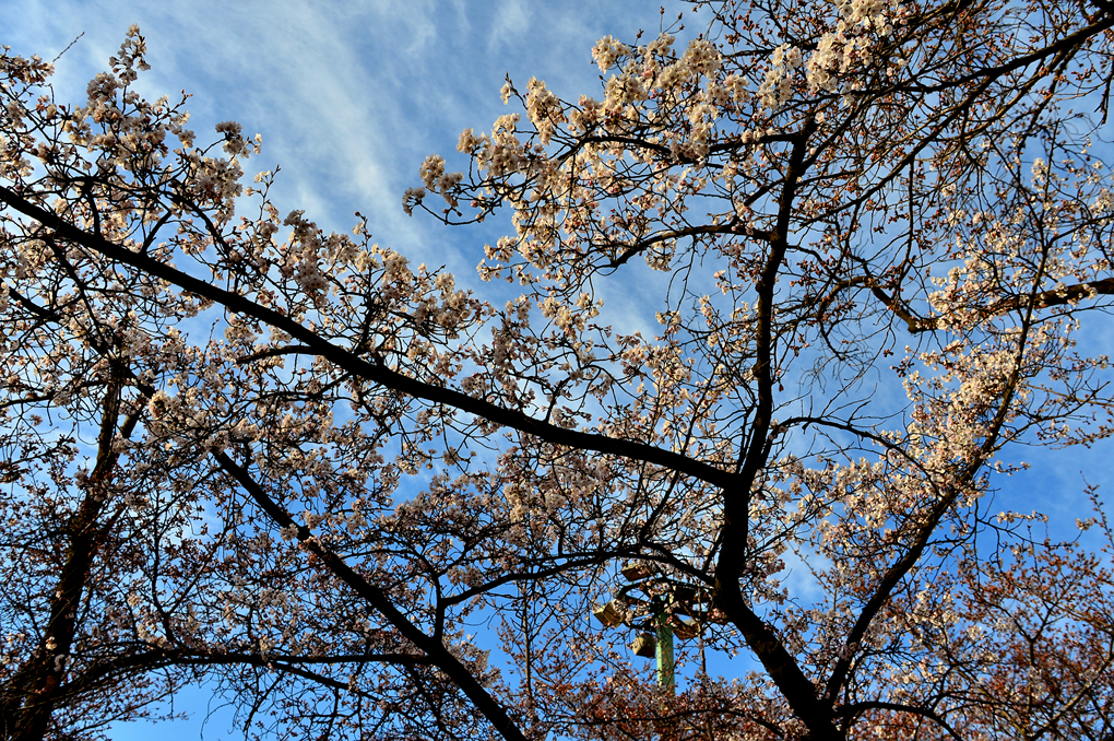 하늘 높은 줄 모르고 올라간 커다란 벚나무와 첨성대 주변의 목련들이 아름다운 풍경을 자아낸다.
