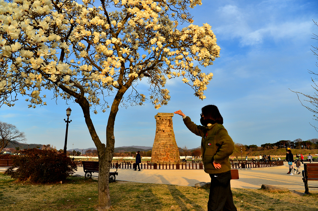 목련과 어우러진 첨성대의 아름다운 모습도 담아본다.