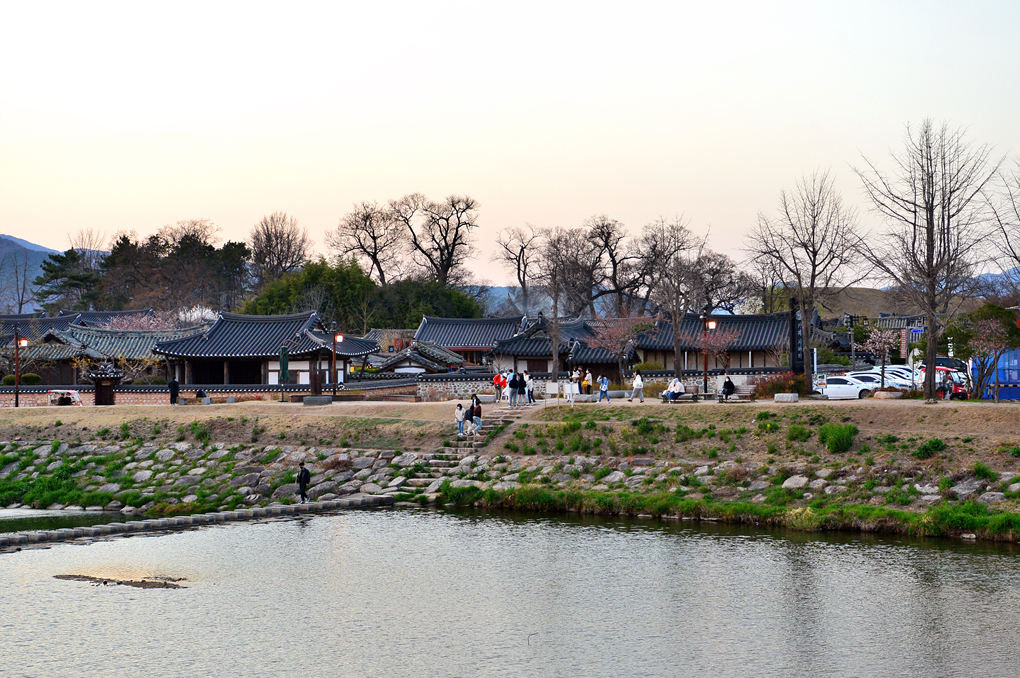 남천 건너편에서 바라본 교촌 마을 풍경이다.