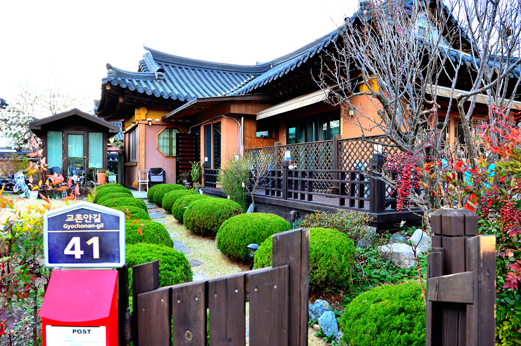 아름다운 한옥들이 늘어서 있는 교촌 마을의 골목 풍경이다.