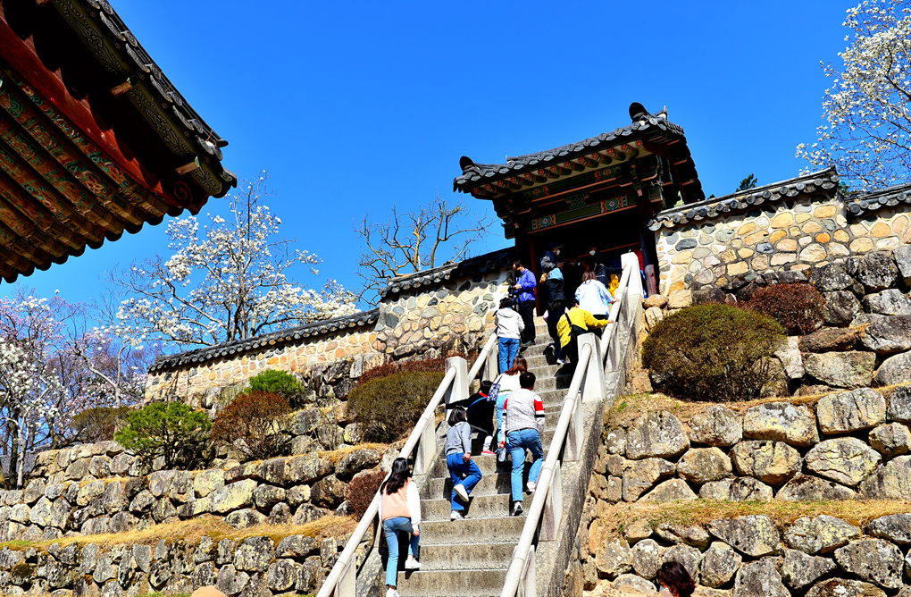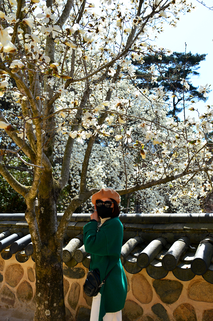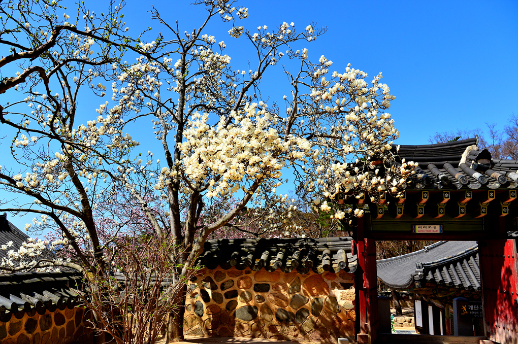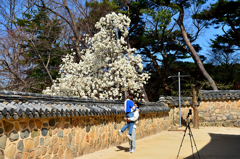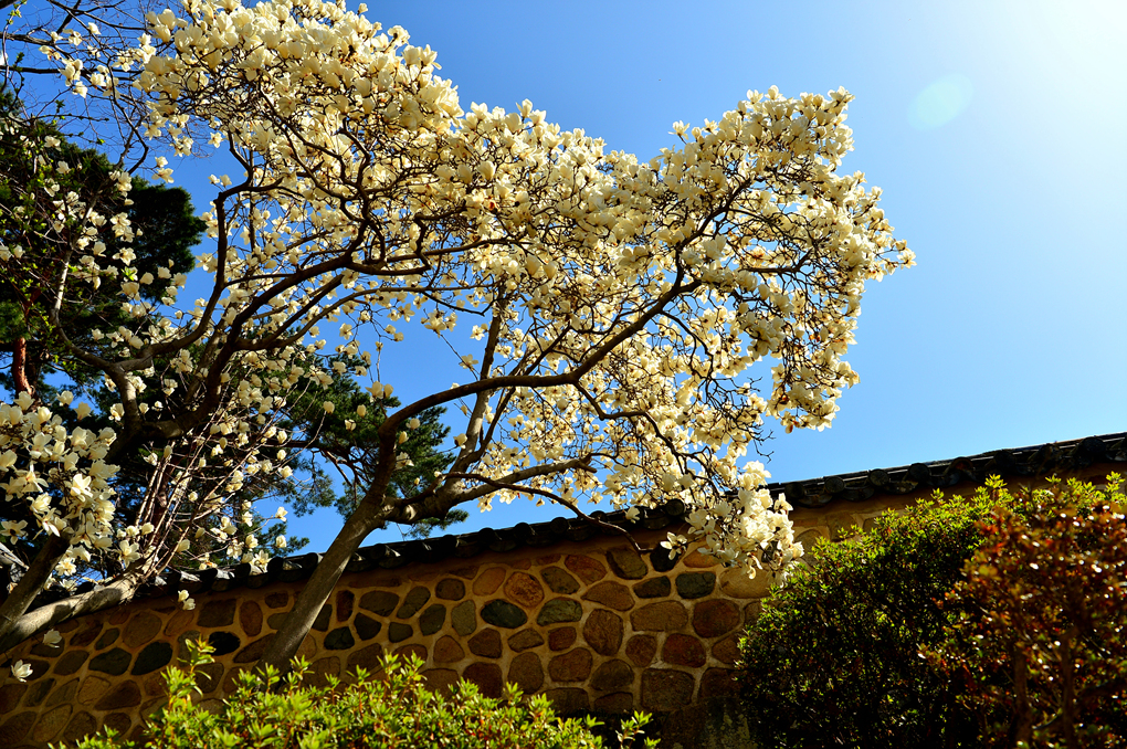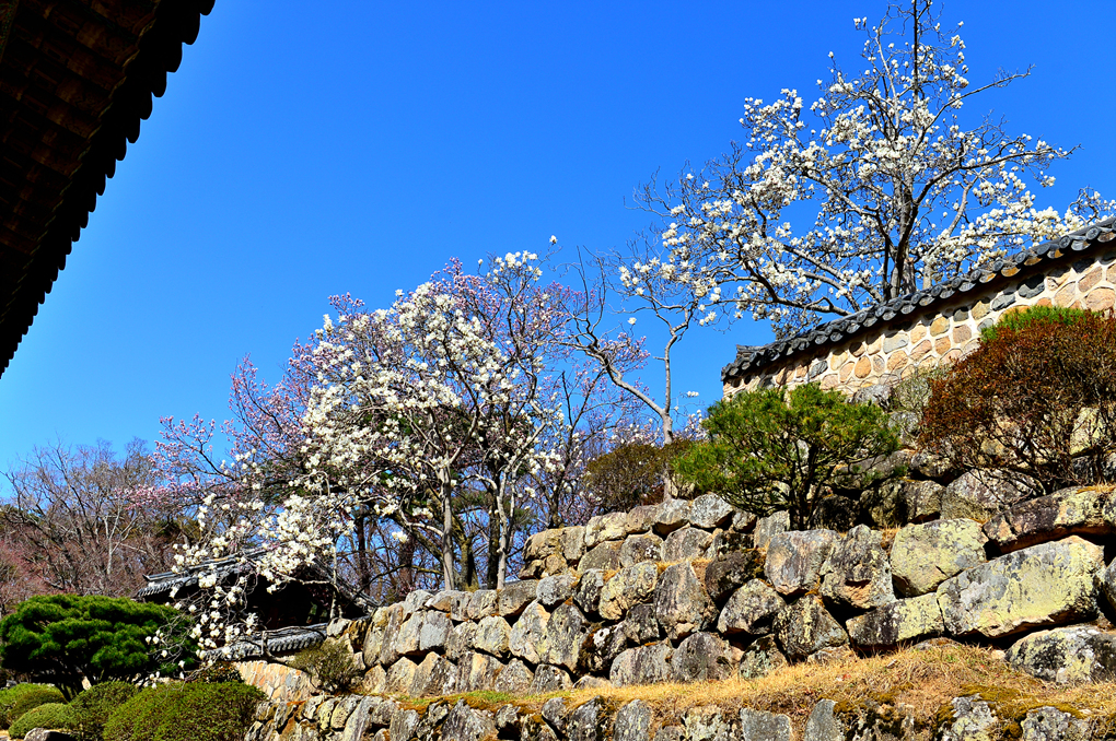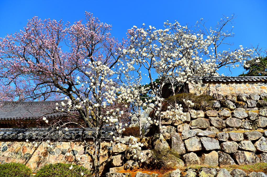 석축과 함께 목련, 벚꽃이 아름다운 풍경을 자아내고 있다.