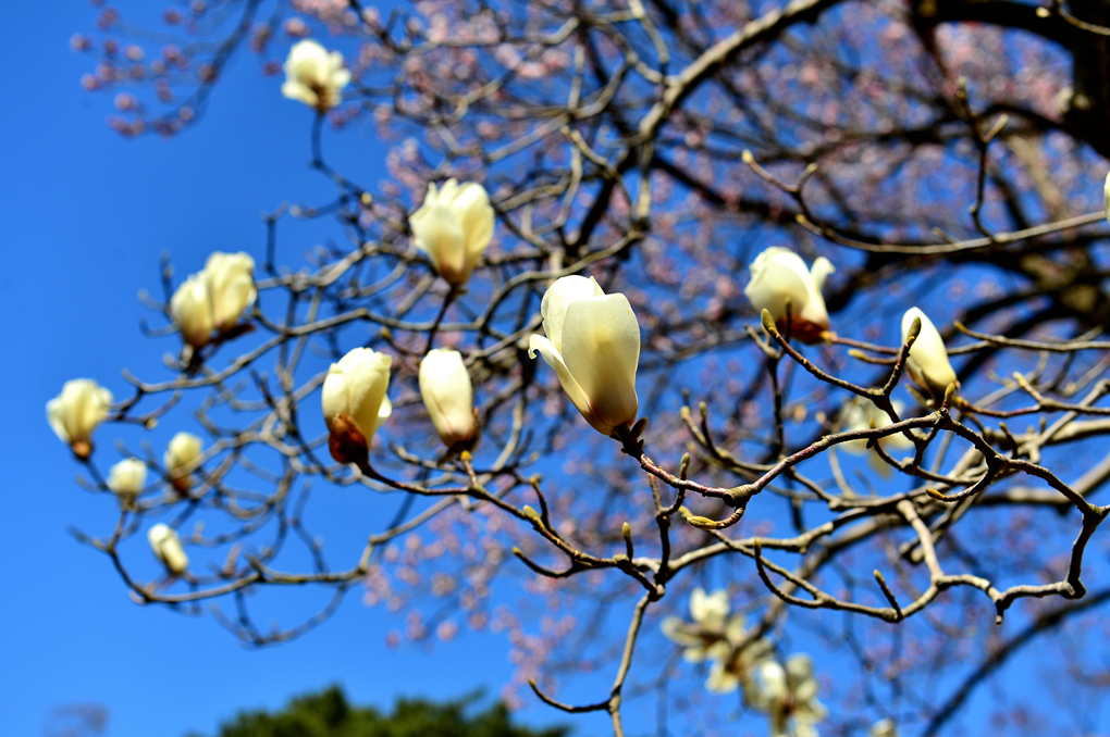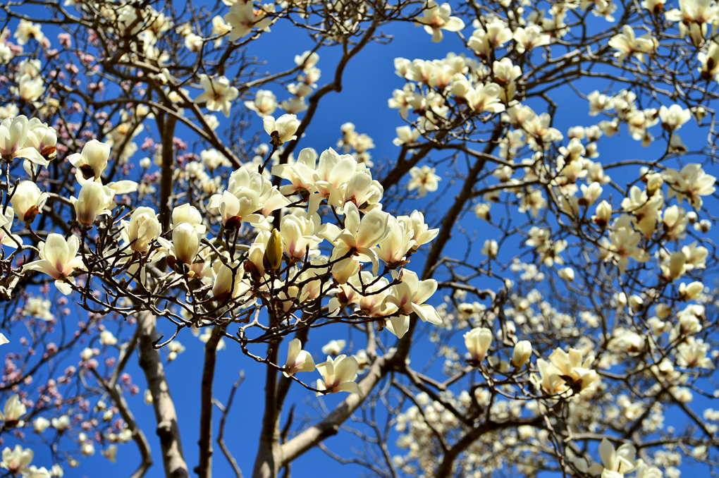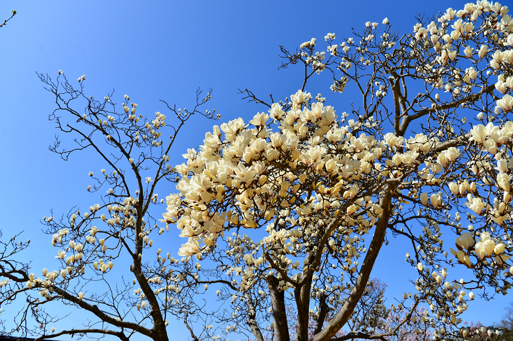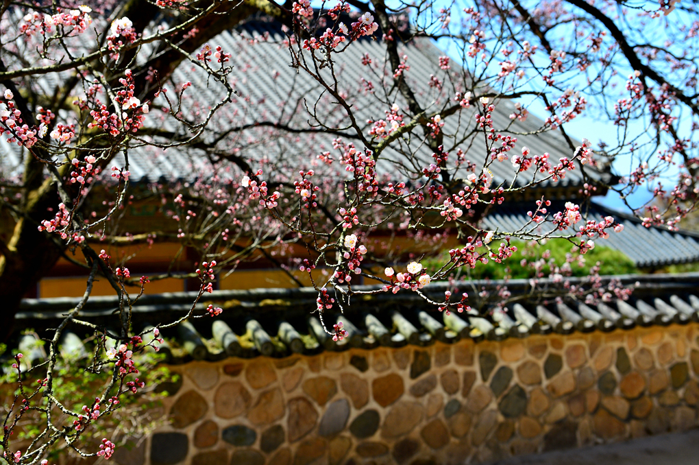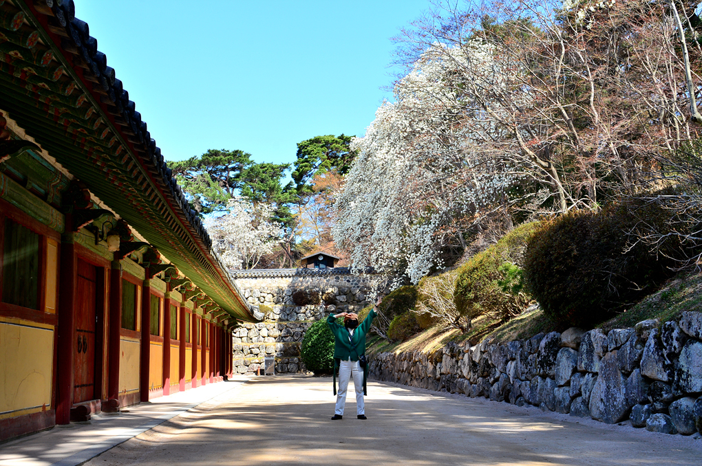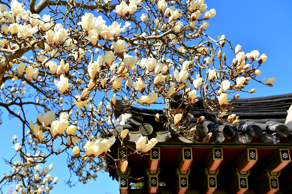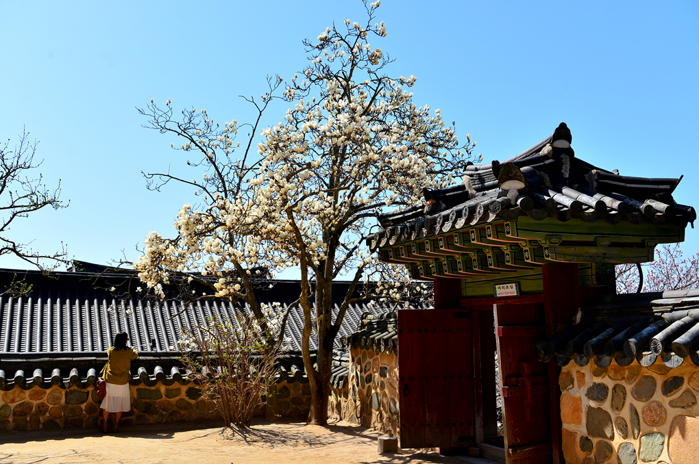 석축과 함께 목련, 벚꽃이 아름다운 풍경을 자아내고 있다.