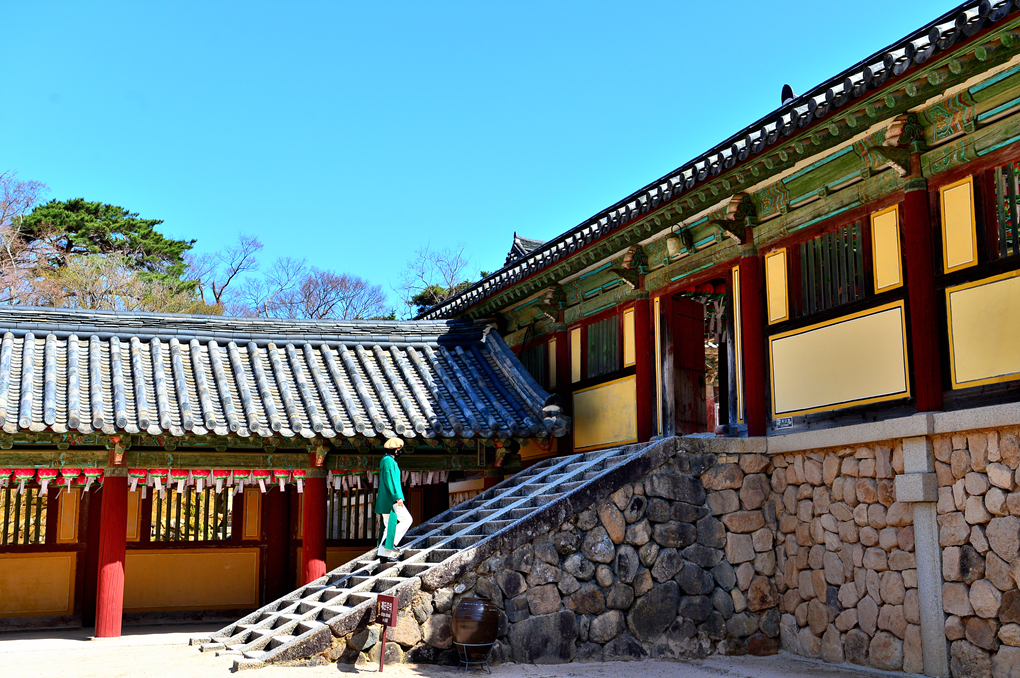 석가탑과 다보탑을 앞세운 불국사의 대표 공간 대웅전이 그 모습을 드러낸다.