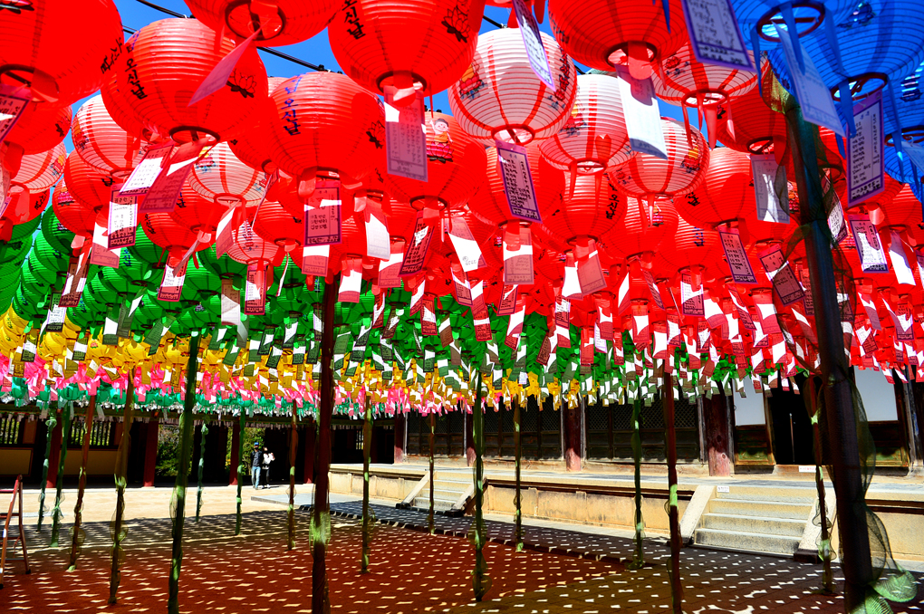 대웅전 뒤 무설전 앞에 걸린 수많은 신도들의 소원을 담은 연등들이다.