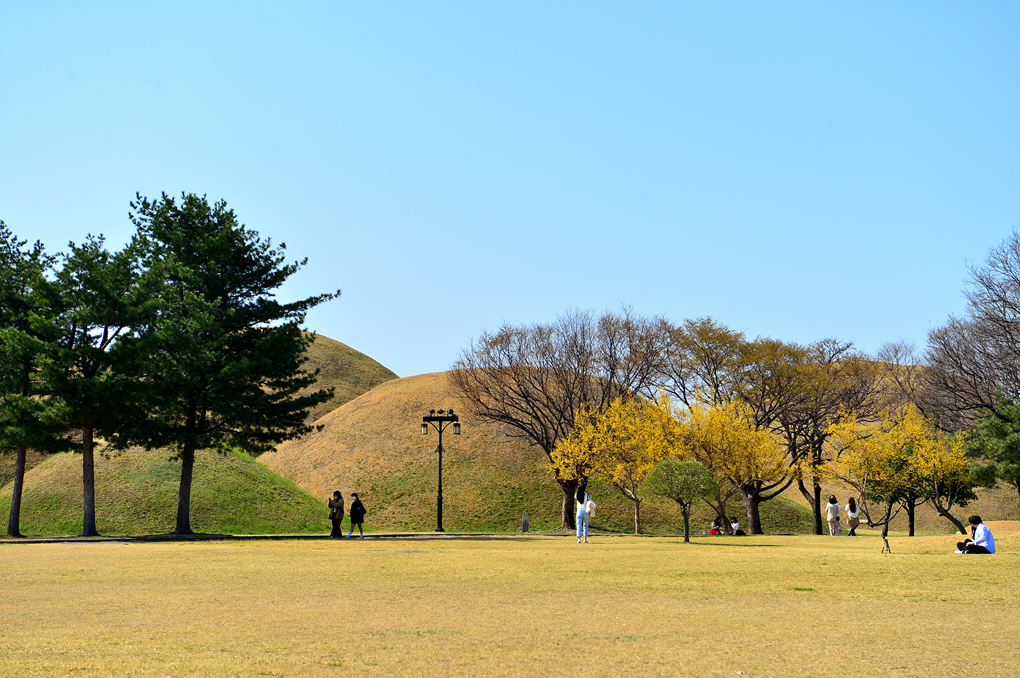 이곳은 대릉원과는 달리 고분 가까이 다가가 볼 수 있어서 또 다른 정취를 느껴볼 수 있다고 하는데, 이곳의 탐방은 다음 기