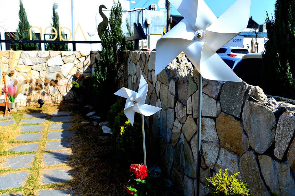 정원에 심어 놓은 아름다운 꽃과 앙증맞은 소품들 모습이다.