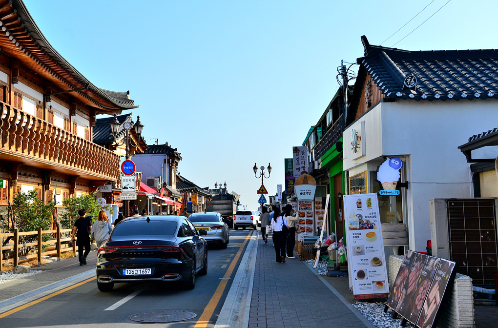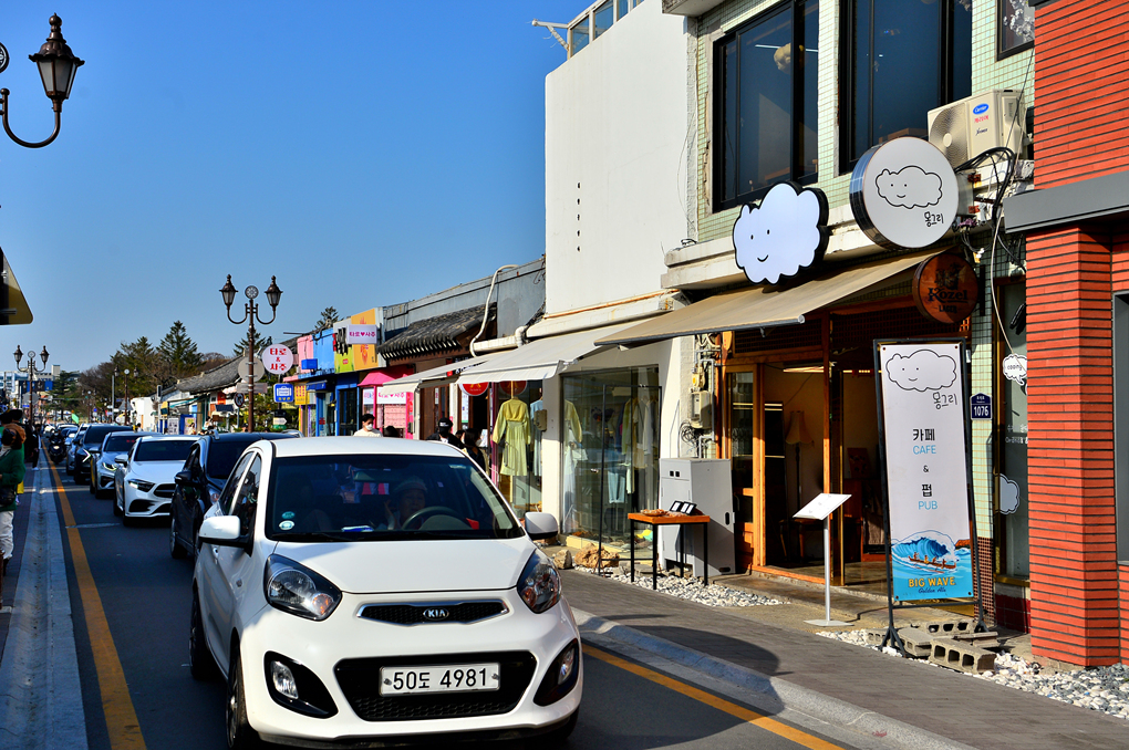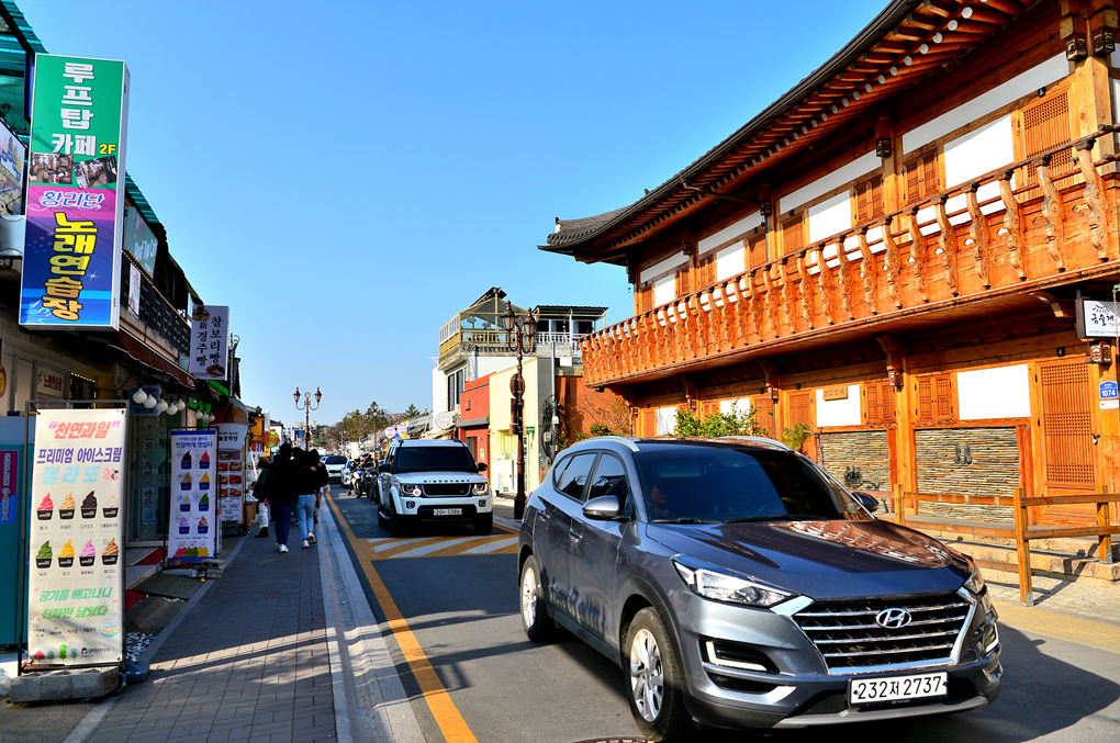 일방통행으로 이루어진 황리단길 모습이다.