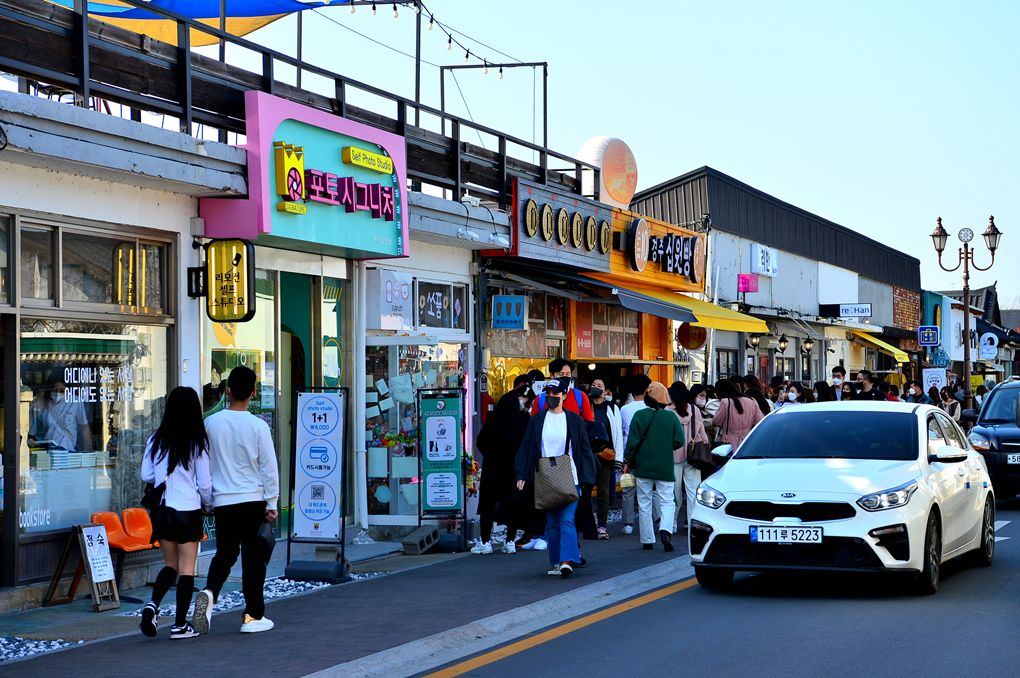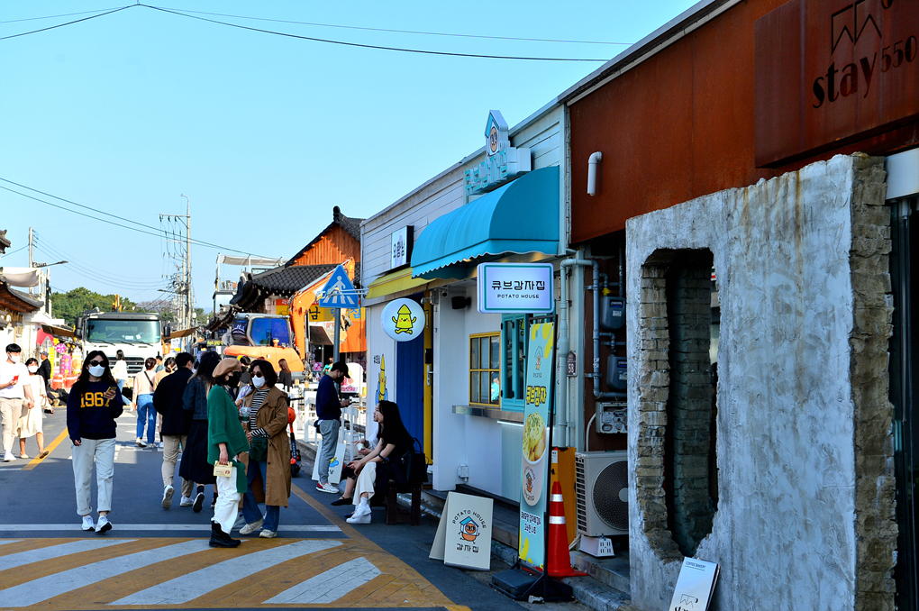 많은 관광객이 왕래하는 황리단길 풍경이다.