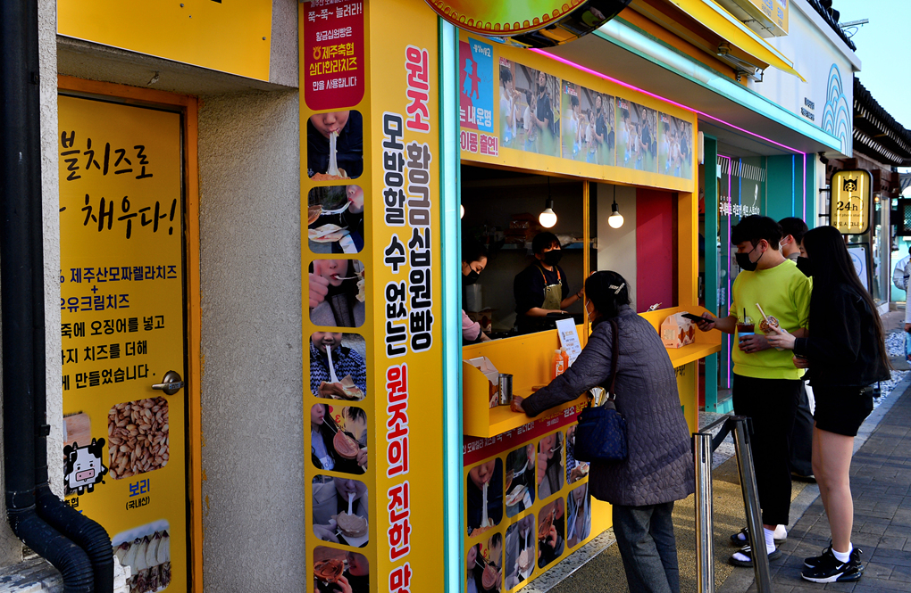 사람들이 잔뜩 모여 있는 곳을 보니 십원빵 상점이다.