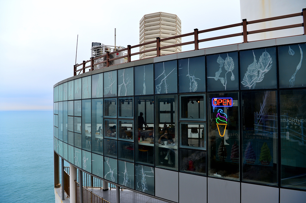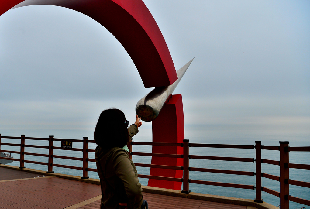 카페 입구에서 바라본 신선대와 조형물 모습이다.