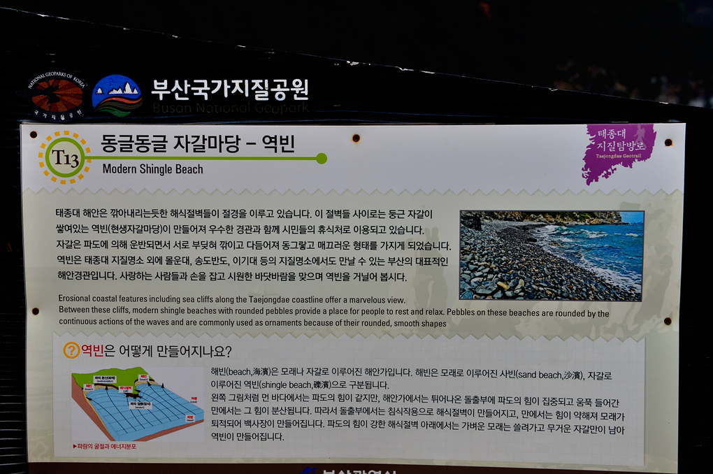태종대에는 푸른 해안선을 끼고 울창한 산림과 곳곳에 깎아 세운 듯한 기암괴석이 솟아있고, 천연자갈로 이루어진 자갈마
