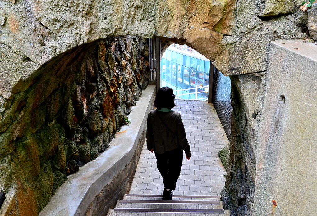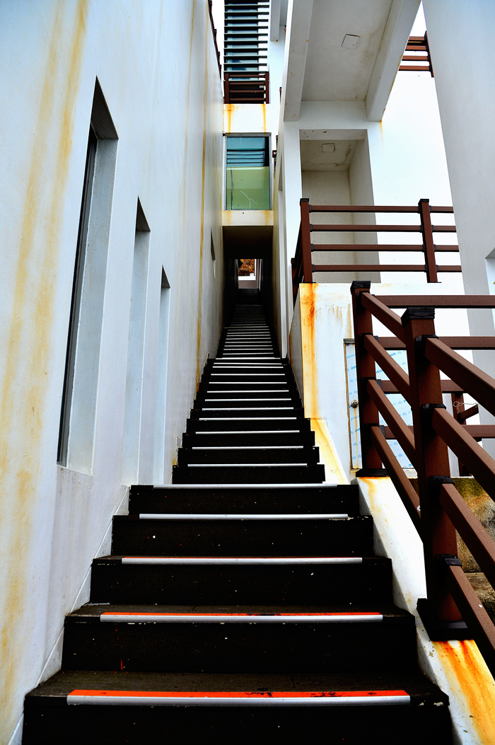 등대 아래쪽 카페 건물로 이어지는 계단이다.