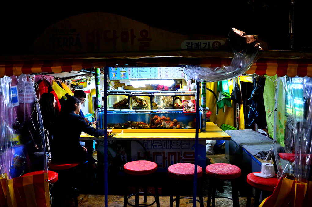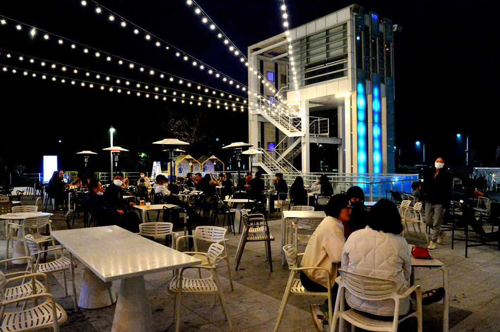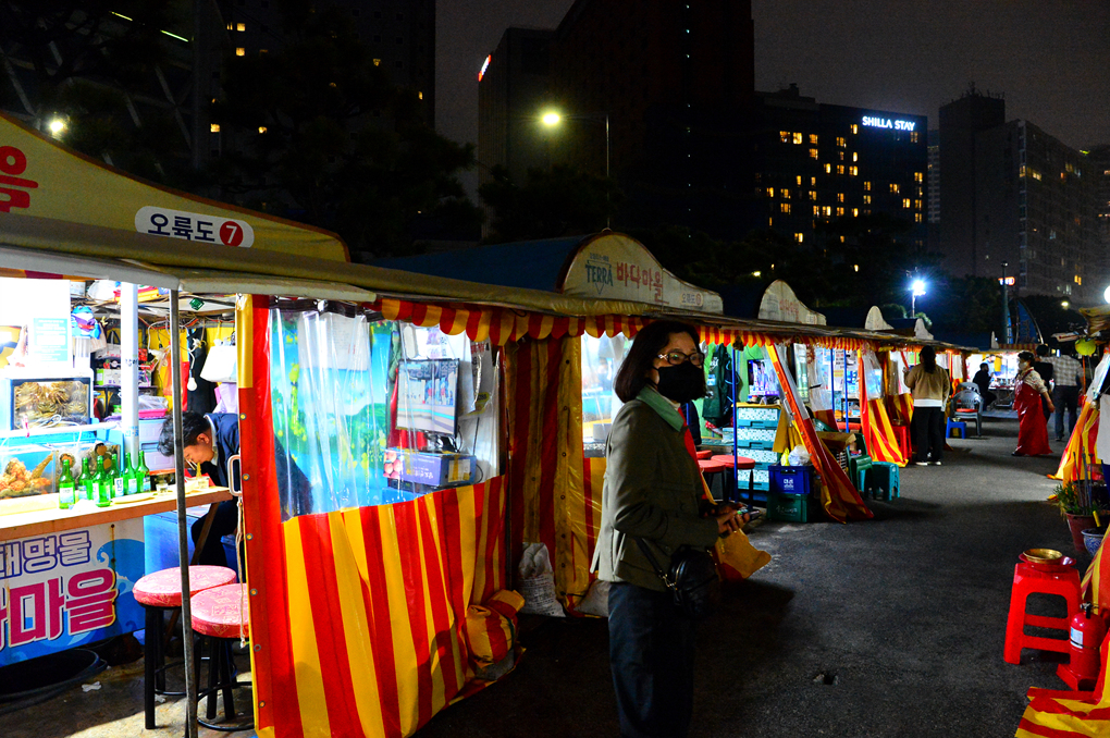 해운대 백사장 옆에 마련된 포장마차들이다.