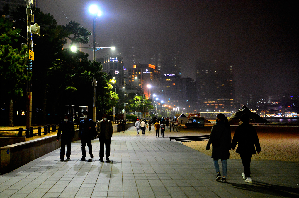 해운대를 둘러싼 고층 아파트에서 뿜어내는 불빛들이 아름다운 야경을 연출하고 있다.