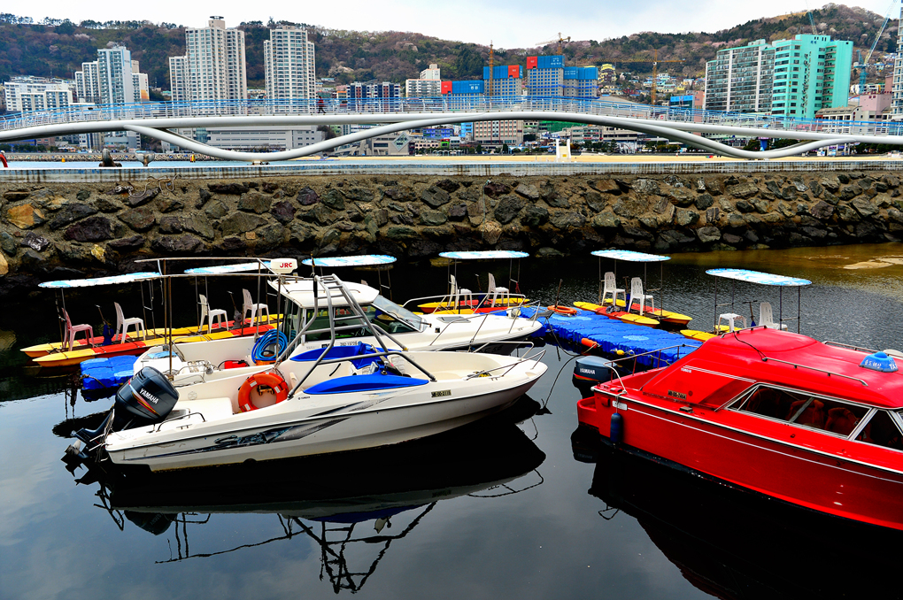 제철을 맞지 못한 작은 배들이 방파제 안에서 휴식을 취하고 있다.