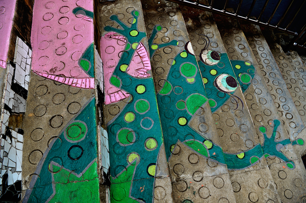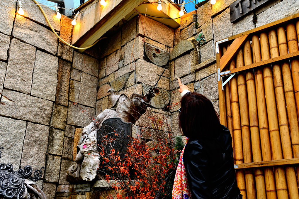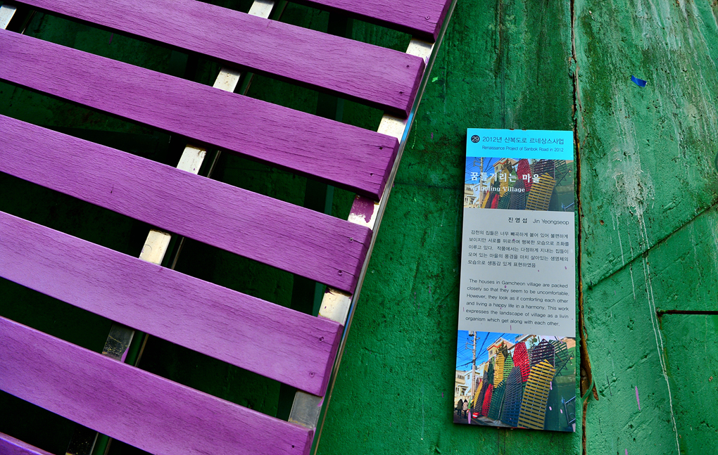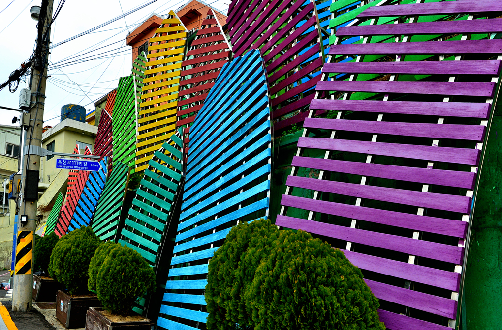 오래된 옹벽을 아름답게 변화시킨 설치 미술품도 보인다.